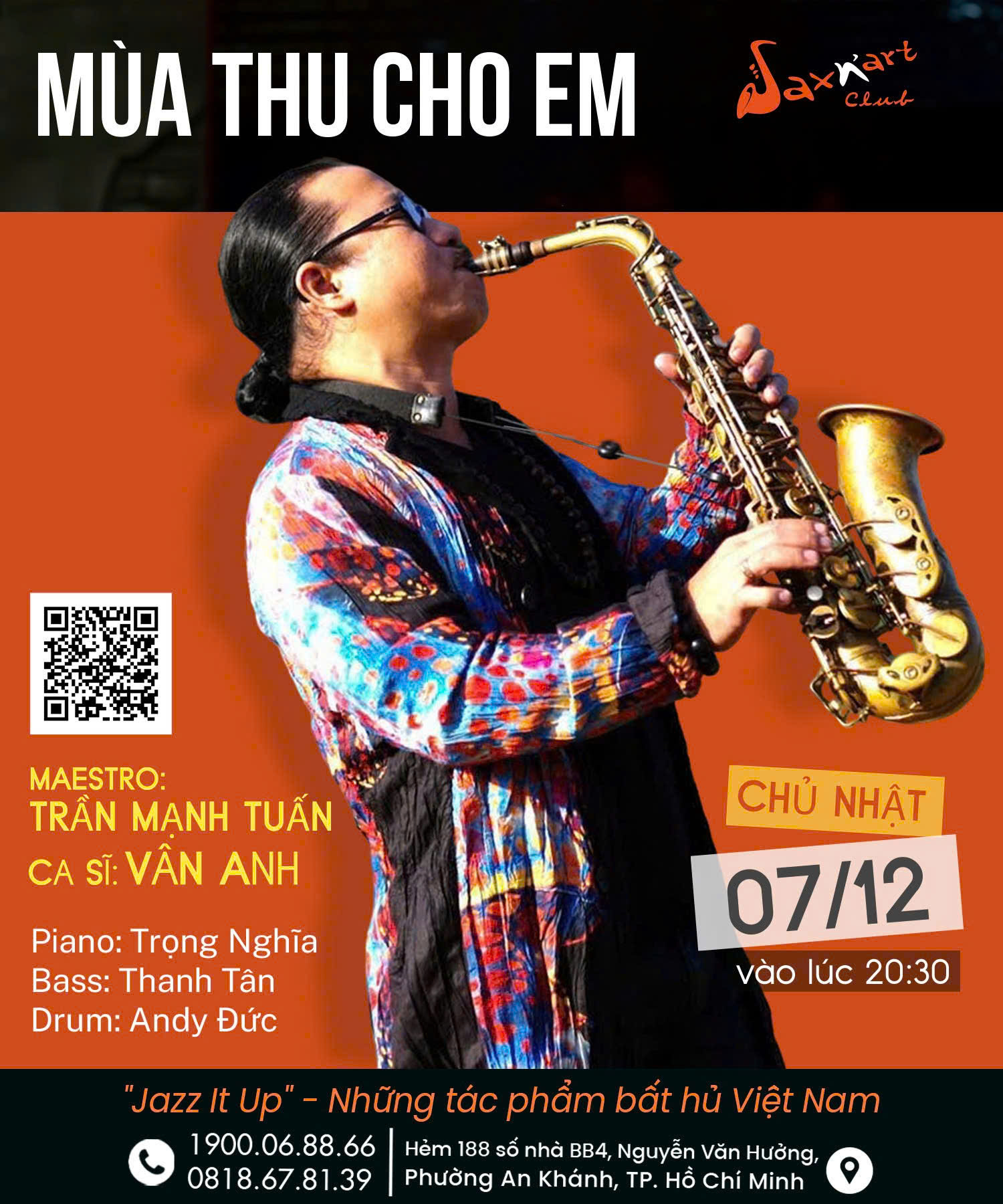 This music night will take the audience on an emotional journey into the serene autumn world of Ngô Thụy Miên. The familiar melody will be brought to life by the heartfelt performances of the artists at SaxN’Art Club, creating a warm and romantic atmosphere.