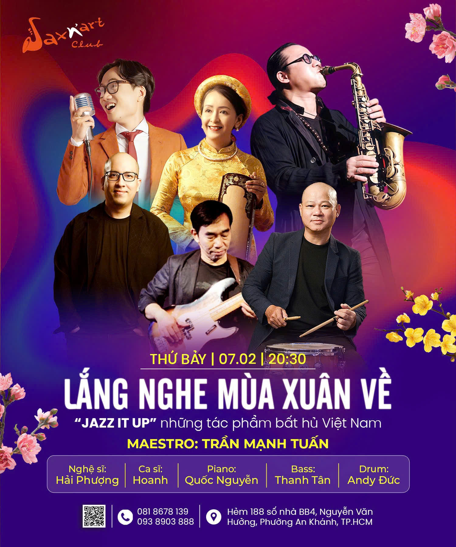 Tinh thần đó sẽ được tiếp nối trong đêm nhạc Thứ Bảy này tại SaxN’Art Club, nơi không gian jazz ấm áp và sự tương tác trực tiếp giữa nghệ sĩ và khán giả giúp cảm xúc được lan tỏa trọn vẹn hơn. Qua giọng hát Hoanh, cùng sự dẫn dắt đầy trải nghiệm của Maestro Trần Mạnh Tuấn, sự hòa quyện tinh tế của nghệ sĩ đàn tranh Hải Phượng, Quốc Nguyễn trên piano, Thanh Tân ở bass và Andy Đức ở trống, ca khúc sẽ được kể lại bằng một màu sắc rất khác, gần gũi, sâu lắng và đầy đối thoại.