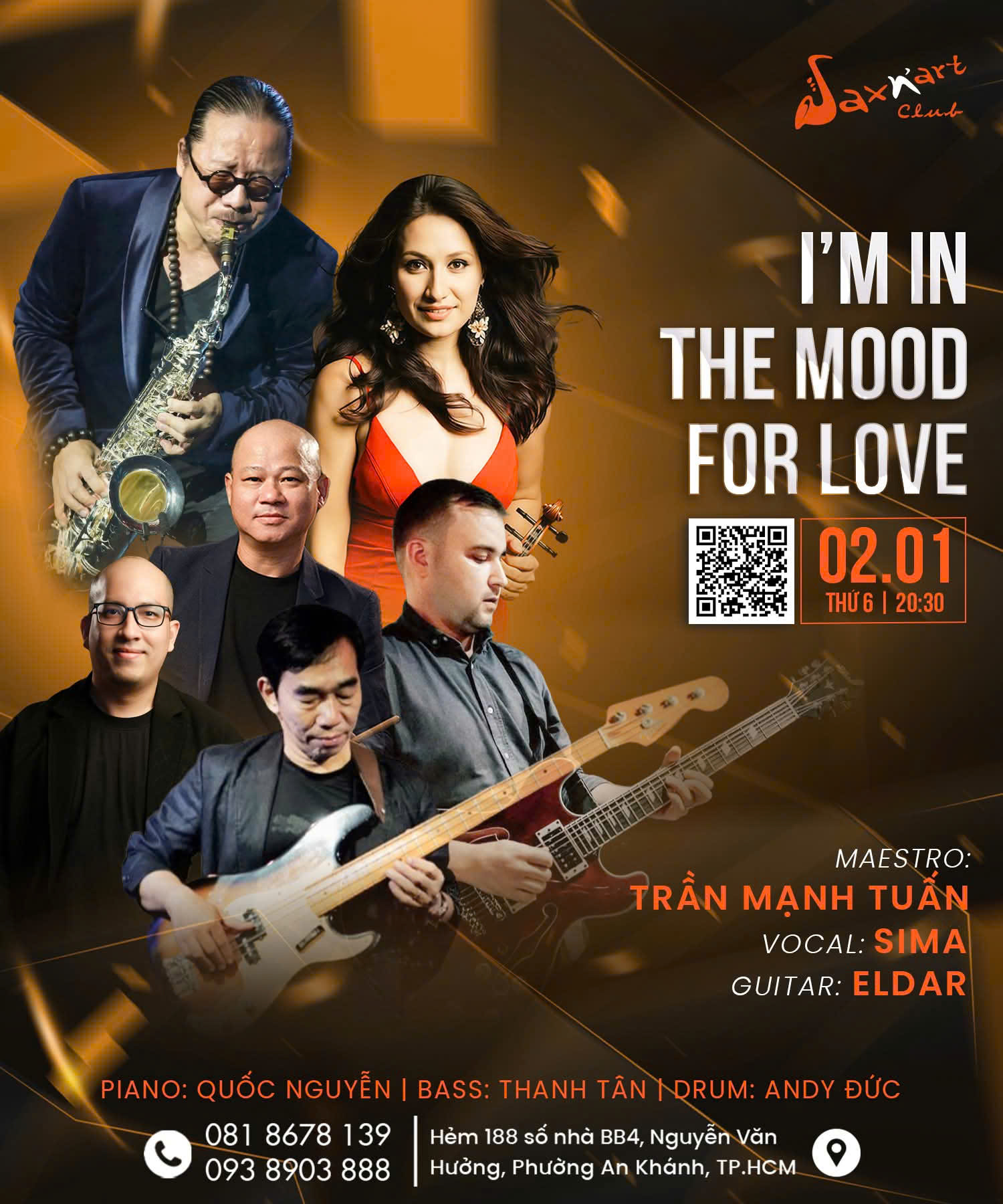 Đêm nhạc I’m in the Mood for Love tại SaxN’Art Club mở ra một không gian lounge jazz lãng mạn và tinh tế. Đó là một buổi tối dành cho những ai tin rằng tình yêu đôi khi chỉ cần một khoảnh khắc, và một bản nhạc vang lên đúng lúc.